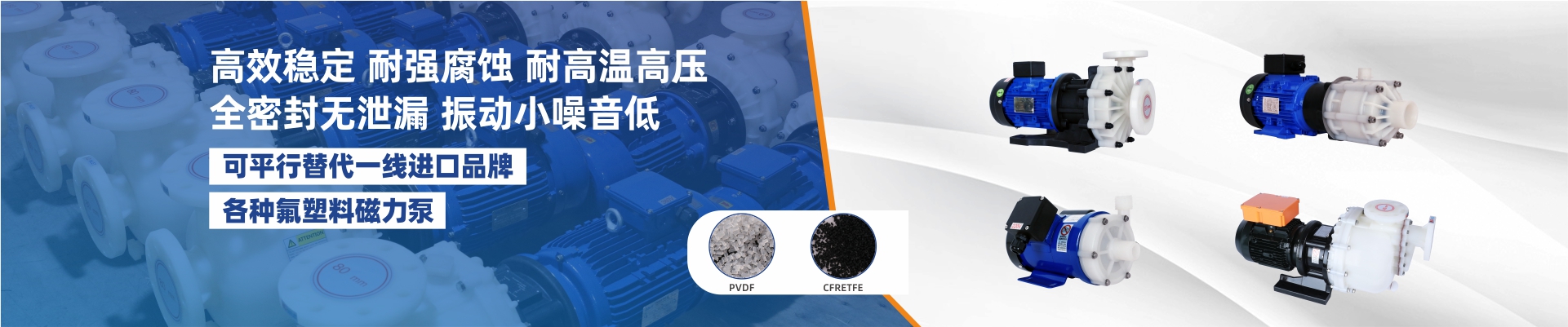 耐強腐蝕,進出口法蘭一體成型專利滴水不漏;采用欽鐵硼高效強磁不消磁,內磁葉輪體成型不爆磁;多種泵頭材質、流量大震動小、噪音低,可另配“智能三防保護裝置”,拒絕空轉損壞。